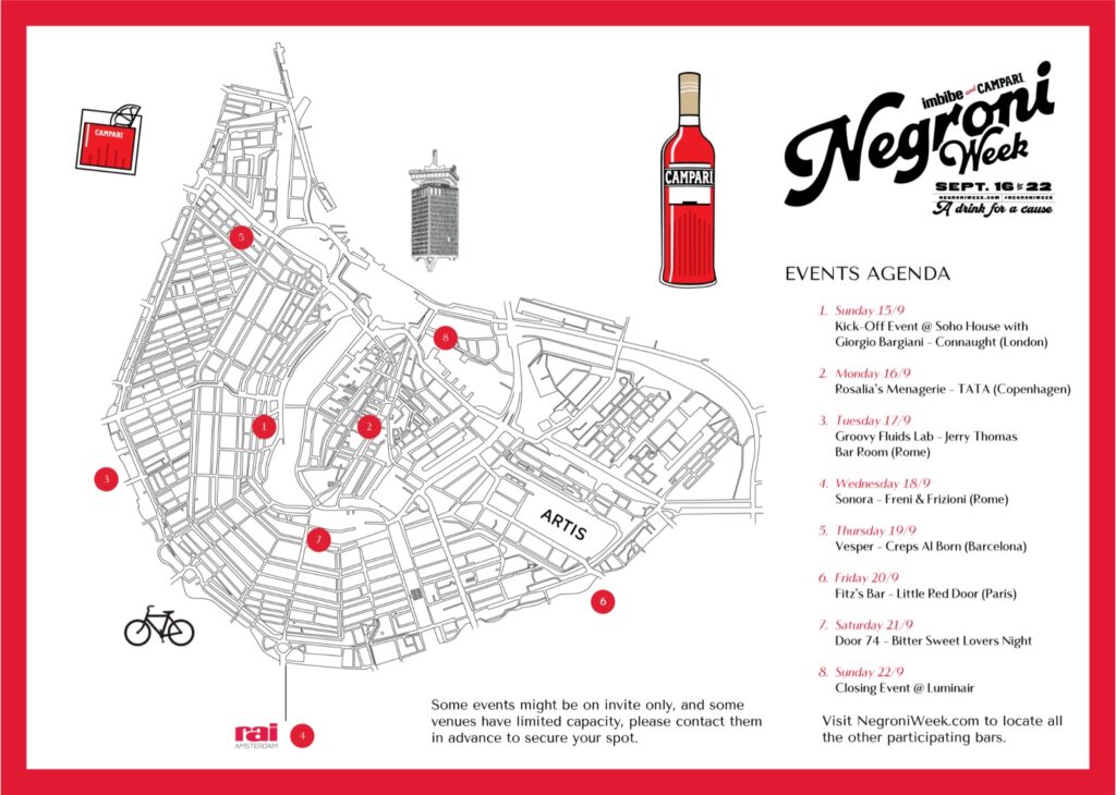 Campari en Imbibe Magazine werken inmiddels al twaalf jaar samen om met duizenden bars over de hele wereld tijdens deze week geld in te zamelen voor Slow Food. Inmiddels heeft dat al meer dan 5 miljoen euro opgeleverd. Daar leveren de Nederlandse bars graag een steentje aan bij. Tijdens de week kun je bij hen innovatieve versies van de Italiaanse klassieker op het menu én de beste bartenders ter wereld reizen af naar Amsterdam.
