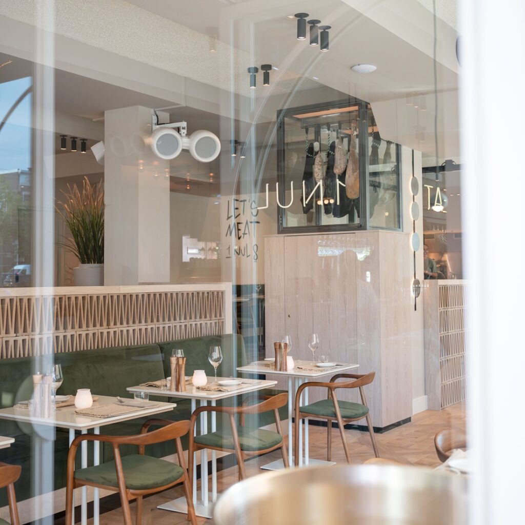 Vorig jaar opende eigenaren Floris van der Sluis en Fabian Loveriks restaurant 1NUL8 Basement. Interieurarchitect Dennis Koeslag is verantwoordelijk voor het ontwerp van beide zaken. In de nieuwe zaak werkte hij met hoogteverschillen, patronen en veel natuurlijke tinten. Net als in restaurant Basement is een 3D geprinte bar prominent aanwezig in de zaak.