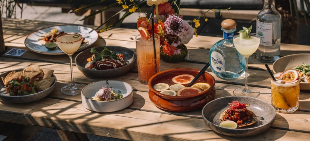 Op het terras maakt de bediening de traditionele totopos de guacamole met macadamianoten af aan tafel. Het team gaat rond met minitasters van de cocktails. En bij de Cazuela de Tequila, een cocktail die het beste van een Margarita en het beste van een sangria combineert, schenkt de bartender bij het serveren nog een tequila naar keuze.