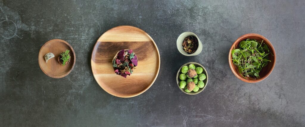 De akkers, de in 2015 aangelegde moestuin – die inmiddels 5.000m2 groot is – en de boomgaard vormen letterlijk de voedingsbodem voor het vegetarisch Moestuinmenu van het restaurant. Dit menu wisselt natuurlijk met regelmaat, aangezien het afhankelijk is van de oogst en fermentatievoorraad.