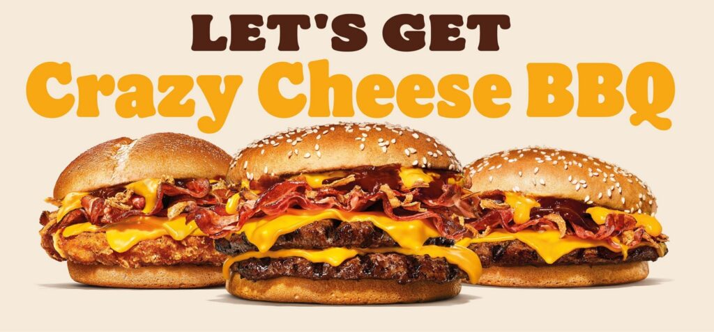 Het is altijd goed nieuws als publiekslievelingen hun comeback maken. Dit keer is het fastfoodketen Burger King die in Nederland de Crazy Cheese BBQ burgers tijdelijk tijdens de zomer weer op het menu zet. Dit keer zijn er vijf varianten: de Crazy Cheese BBQ, de Crazy Cheese BBQ Double, de Crazy Cheese BBQ Chicken, de Veggie Crazy Cheese BBQ en Veggie Crazy Cheese BBQ Double.