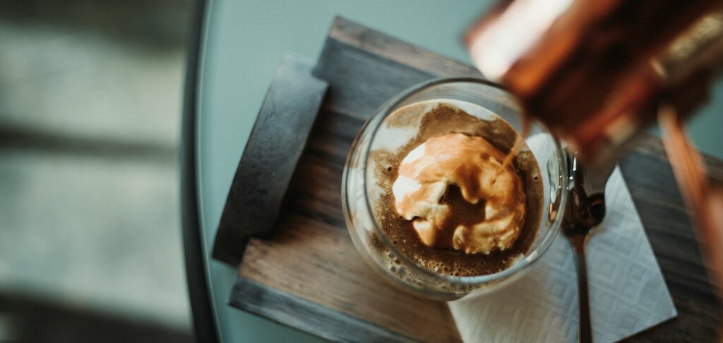 Voor het ontstaan moeten we terug naar de jaren ’50 van de vorige eeuw als ijsfabrikanten in Italië gaan moderniseren. Er moesten meer momenten komen om ijs te eten, dus waarom niet in combinatie met koffie? Want in een affogato komen: bitter, zoet, warm, koud, donker en licht samen. Hij wordt gemaakt met verse espresso, ijs en een scheutje Frangelico (of amaretto, rum of een andere koffielikeur).