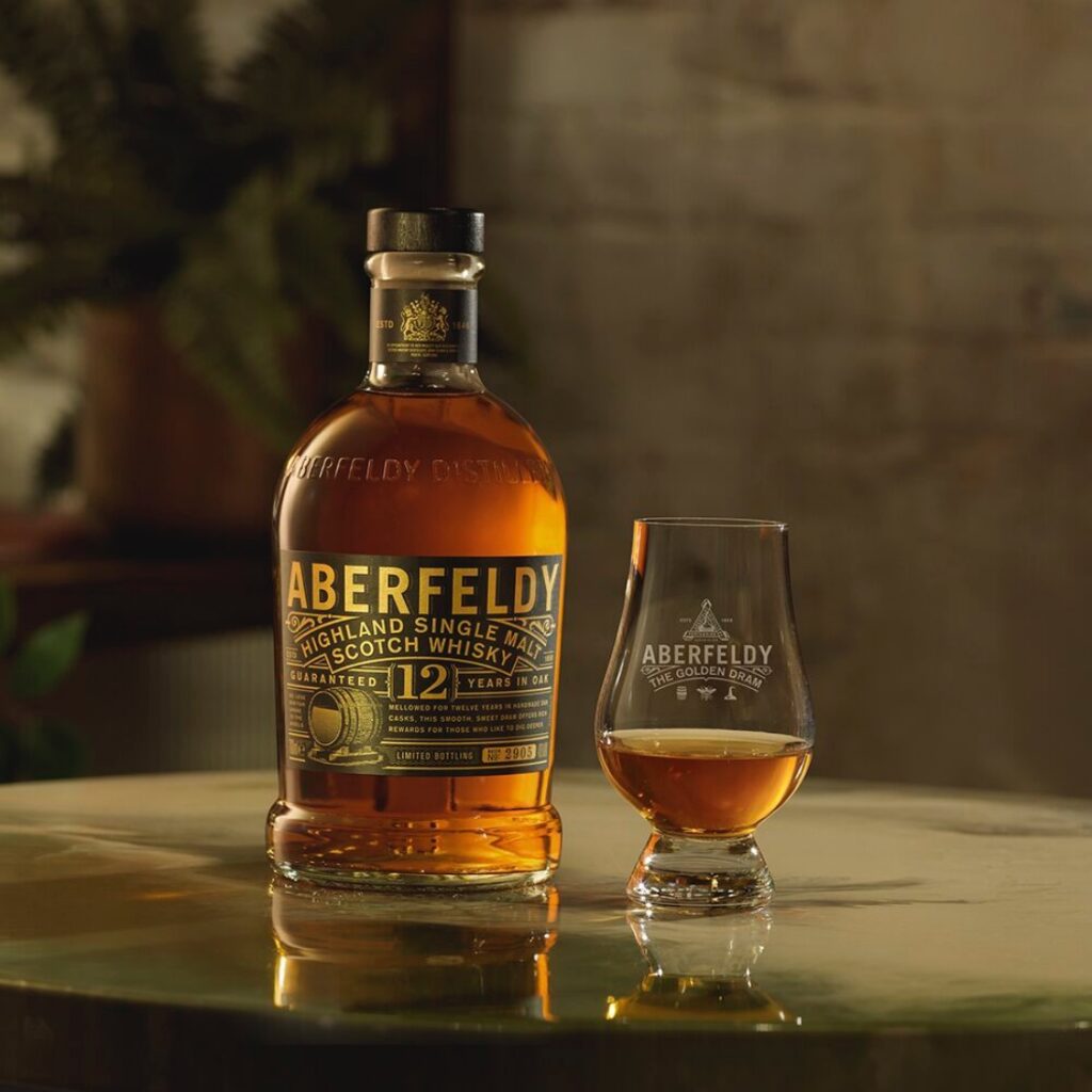 Het paradepaartje onder de whisky’s van het merk is de ABERFELDY 12. Deze 12-jarige single malt rijpt in eikenhouten vaten, waarvan sommige eerder werden gebruikt voor bourbon, wat bijdraagt aan de vanille- en eikentonen. Met zijn honingachtige profiel en soepele afdronk is ABERFELDY 12 geliefd bij zowel beginners als doorgewinterde whiskyliefhebbers.