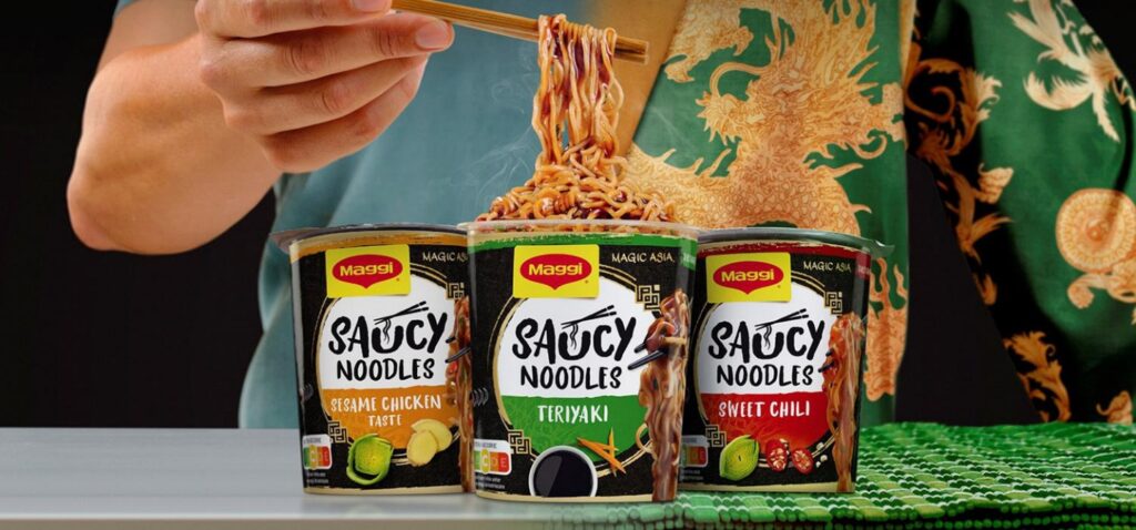 Maggi introduceert in Nederland de ‘Magic Asia Saucy Noodles’. Dat zijn instant noedels in een cup met saus die in een handomdraai klaar zijn. Er zijn zes varianten van mild en romig tot spicy met authentieke Aziatische kruiden. Het gaat om de smaken Asia Classic, Sesame Chicken, Teriyaki, Peanut Saté, Sweet Chili en Red Curry